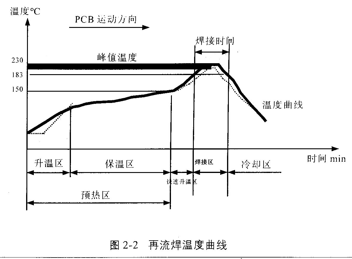 從溫度曲線(見圖2-2)分析再流焊的原理:當(dāng)PCB進(jìn)入升溫區(qū)(干燥區(qū))時(shí),焊膏中的溶劑、氣體蒸發(fā)掉,同時(shí),焊膏中的助焊劑潤濕焊盤、元器件端頭和引腳,焊膏軟化、塌落、覆蓋了焊盤、元器件端頭和引腳與氧氣隔離→PCB進(jìn)入保溫區(qū)時(shí),PCB和元器件得到充分的預(yù)熱,以防PCB突然進(jìn)入焊接高溫區(qū)而損壞PCB和元器件→當(dāng)PCB進(jìn)入焊接區(qū)時(shí),溫度迅速上升使焊膏達(dá)到熔化狀態(tài),液態(tài)焊錫對(duì)PCB的焊盤、元器件端頭和引腳潤濕、擴(kuò)散、漫流或回流混合形成焊錫接點(diǎn)→PCB進(jìn)入冷卻區(qū),使焊點(diǎn)凝固。此時(shí)完成了再流焊。
